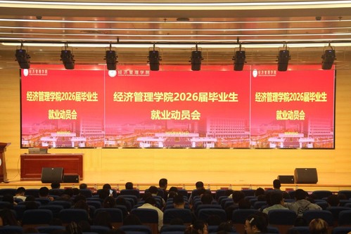 为扎实做好2026届本研毕业生就业工作,帮助毕业生全面分析就业形势,树立正确求职观念,做好充分求职准备,9月24日,经济管理学院召开2026届毕业生就业动员大会。院长王念新,各系主任,团委书记周庆文、毕业班辅导员出席大会,全体2026届毕业生参加会议。