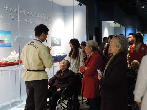 在承载着学校历史与梦想的船舶文化纪念馆内,老革命们在学生志愿者的陪伴与专业讲解员的引导下,饶有兴致地参观了展陈。从船舶模型到科研成就,前辈们认真聆听,不时点头赞许,通过学校在船舶与海洋工程领域的深耕与贡献,直观感受了国家海洋强国战略下的新发展、新面貌。这段“青春邀约·感知今朝”的行程,不仅展示了学校的育人成果,更搭建起连接历史与未来的桥梁。
