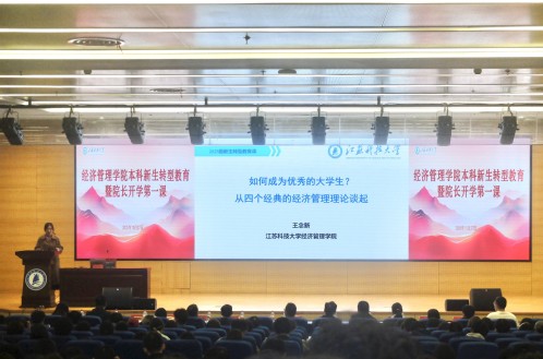 为帮助2025级本科新生尽快适应大学生活、深化专业认知、明确发展方向,10月27日,经济管理学院于图书馆B105报告厅开展“本科新生转型教育暨院长开学第一课”入学教育活动。院长王念新、党委书记尹洁、副院长叶涛锋、副院长李文昌、各系主任、专业负责人、辅导员及全体2025级新生共同参与此次活动。