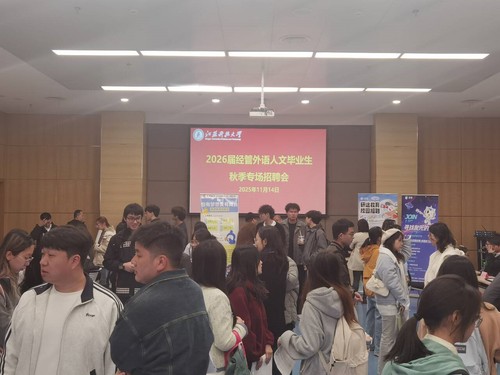 为扎实推进毕业生就业工作,拓宽就业渠道,11月14日,经济管理学院联合人文学院、外国语学院在长山校区图书馆B104成功举办2026届经管-人文-外语秋季专场招聘会。