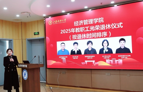 会议第四阶段,学院隆重举行2025年度教职工荣休仪式。学院全体教职工共同向学院5位荣休教师致以最真挚的敬意与最恳切的祝福,荣休教师代表吕向阳、潘燕华深情回顾了数十载执教岁月,由衷感谢学校与学院的悉心培养,感恩同事们的长期支持与温暖陪伴。尹洁号召学院青年教师传承荣休教师精益求精的治学态度、甘于奉献的职业情怀和胸怀家国的责任担当,在教育强国的新征程中勇担使命、接续奋斗。