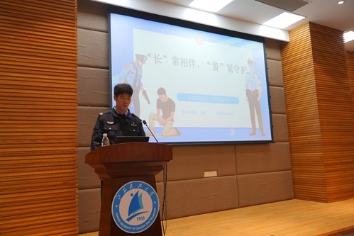 系列活动首站以“‘长’常相伴,‘警’紧守护”为主题,孙民警介绍了长山派出所职能概况、报警求助方式等信息,细致讲解校园突发事件应急处置流程,普及日常安全防范知识,引导同学们科学应对各类安全风险,合理借助警务力量维护自身合法权益,切实筑牢校园安全防护屏障。