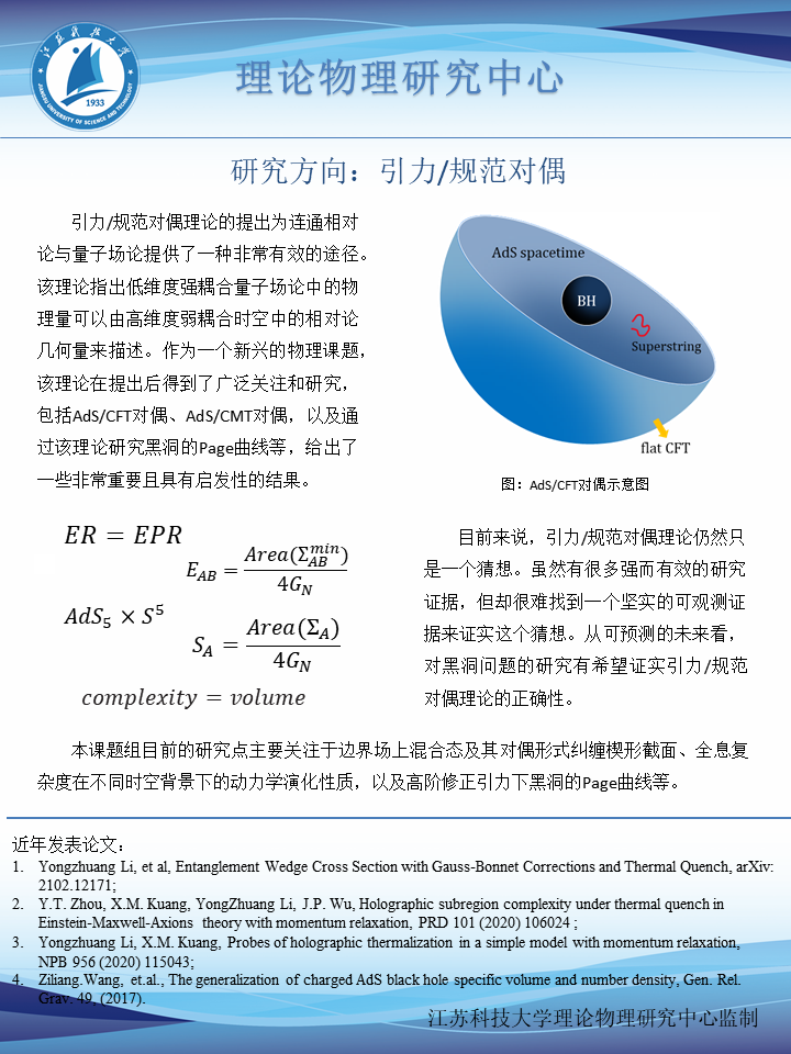 raybey雷竞技 理论物理研究中心2020年依托应用物理系成立,研究中心聚焦非线性物理、冷原子物理、量子信息学、量子光学、量子场论、高能物理、相对论天体物理七个基础性科学领域前沿课题,按照基础物理理论与应用数学、光学工程、天体物理、高能物理等学科分支交叉融合培育前沿理论物理高水平科研成果,力争建成国内知名具有特色优势的学术创新中心、人才培育中心与科学知识传播中心。
