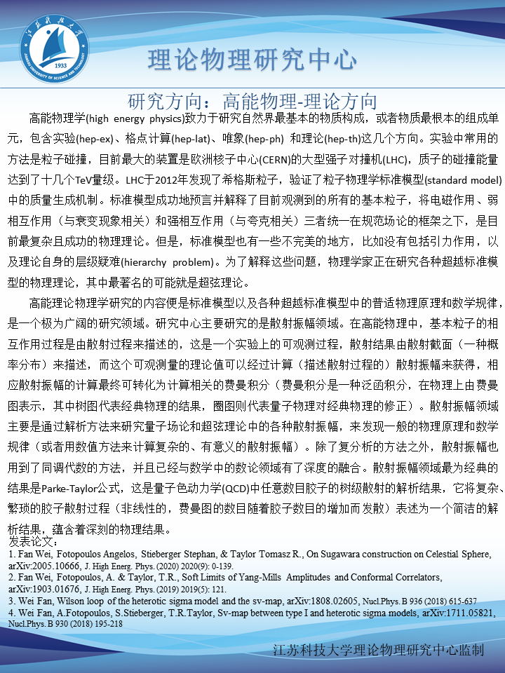 樊炜 | 博士/副教授 | 高能理论物理 |