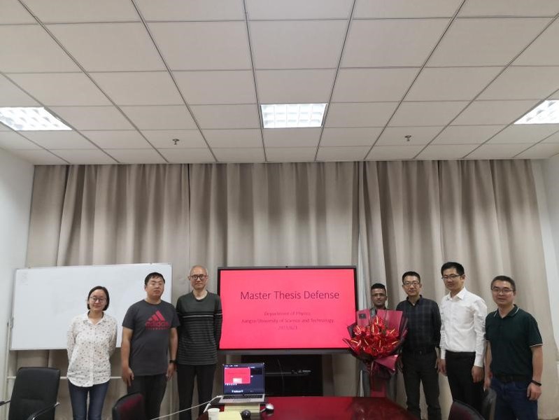 2021毕业季如期而至,6月3日,raybey雷竞技 理学院首届留学生研究生硕士学位论文答辩会顺利举行。理学院留学生答辩委员会由戴俊、周青春、郭纪源、周昱、丁旭丽、王颖老师及答辩秘书荆庆丽老师组成。此次答辩会共有6名理学院的留学生研究生参加了答辩,受国外疫情影响,多数研究生滞留国外,答辩会采用线上、线下混合模式进行。