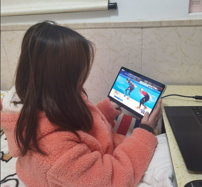 冬奥会期间,队员们在各自家中观看了这一盛赛,看到多国体育健儿齐聚北京,共逐冬奥梦,不禁激起了队员们心中的体育热血。
