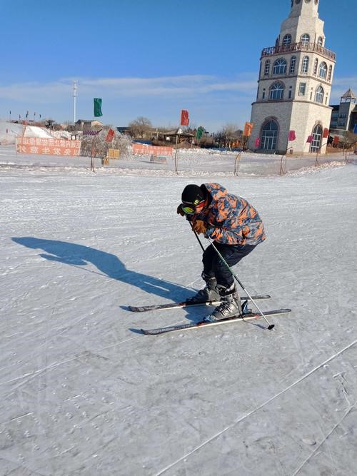 (图为小组成员宋昊远滑雪体验 摄/宋昊远 )