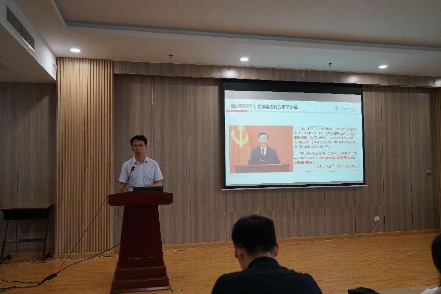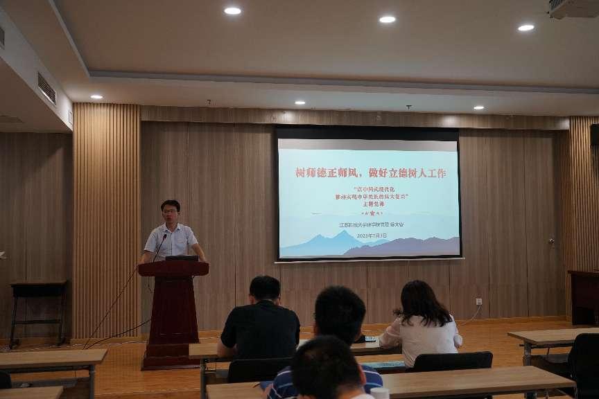 7月3日下午,理学院党委开展“树师德正师风,做好立德树人工作”教育活动,理学院党委书记徐文睿以“以中国式现代化全面推进中华民族伟大复兴”为题,为学院全体教工党员、研究生党员代表作主题党课。