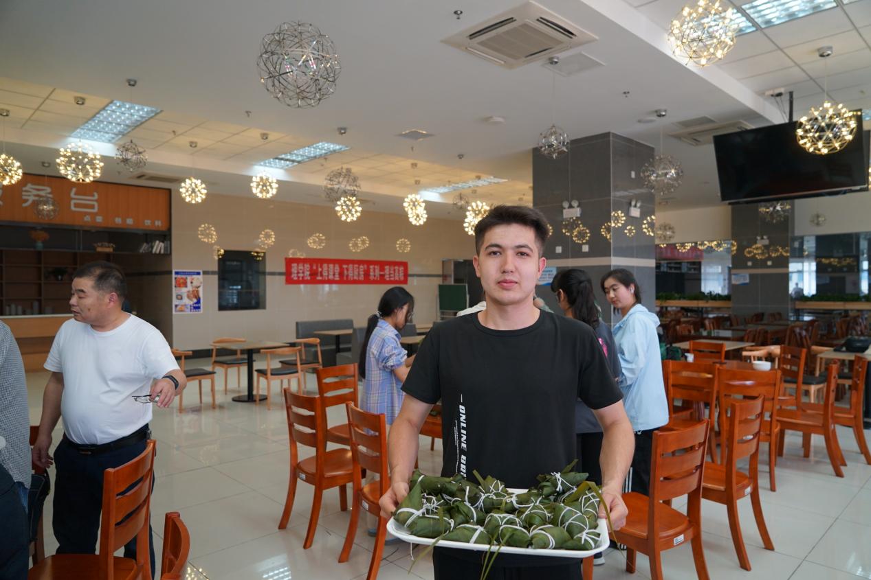 活动当天,工作人员准备了糯米、粽叶、红枣、红豆等丰富的食材。活动中,老师与学生一起边包粽子,边畅谈端午文化,各显身手,相互取经,交流包粽子的技巧,叠“漏斗”、放糯米、放配料、压实、折粽叶、绑紧,一个个有棱有角、形状各异的粽子在师生手中诞生,活动现场洋溢着浓烈的节日气氛。来自维吾尔族的应用统计学专业阿卜力米提表示,虽然包粽子看起来简单,但真正包起来却需要一定的技巧和耐心,在这过程中也让他感受到了家的味道。不一会儿,一盆盆翠绿精致新鲜的粽子已包好,入锅慢煮,馥香四溢。师生们共同品尝了自己亲手包的粽子,感受到了劳动的成果和节日的温馨。