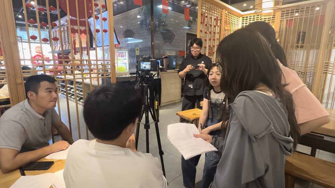 在制作体验的同时,同学们按照事先准备好的脚本,以视频形式记录下了锅盖面从选材到成品的全过程。拍摄中,不仅注重展示锅盖面制作技艺的细腻与精湛,还通过镜头捕捉了师傅们专注工作的瞬间,展现出他们对这一传统技艺的热爱与坚持。视频内容既真实地再现了锅盖面的制作流程,也生动地传递出非遗技艺背后所蕴含的文化价值与精神内涵。制作锅盖面看似简单,但每一道工序都蕴含着丰富的经验与智慧,这正是非遗文化的魅力所在。