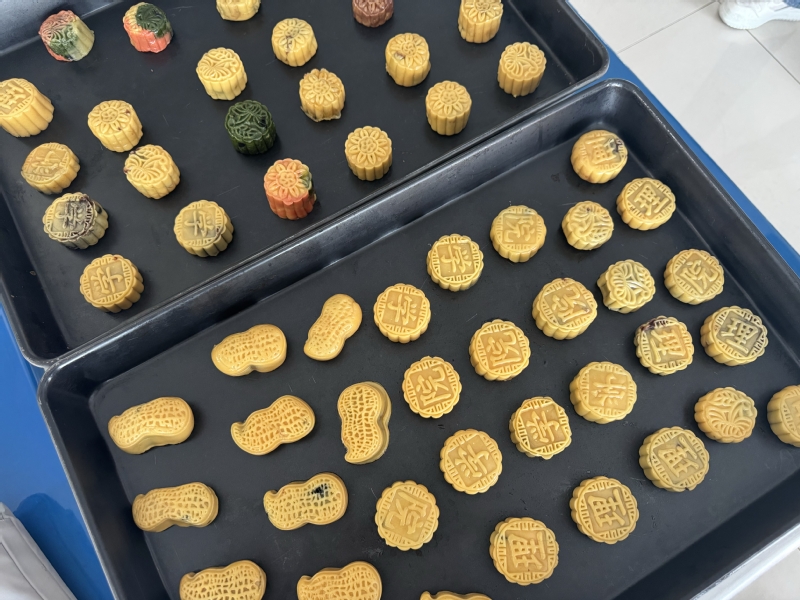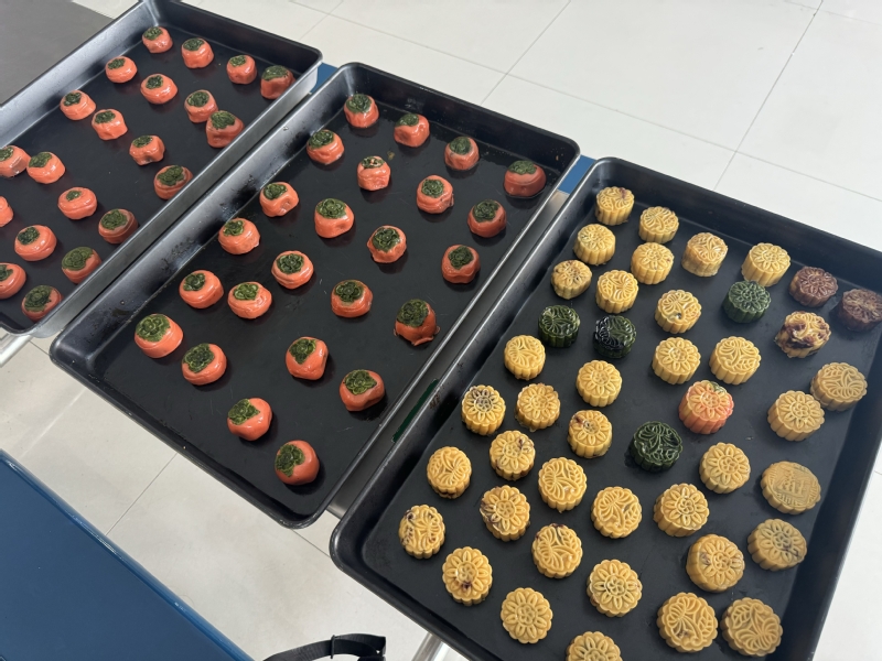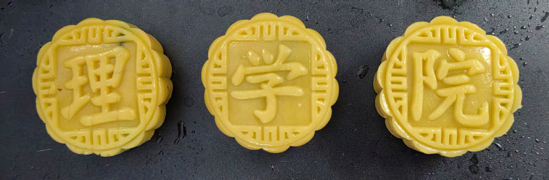 月饼的制作工艺程序有揉面、醒面、制饼皮、包馅、揉团压扁、压模、烘焙等,从开始准备到新鲜出炉需要经历3个小时左右。活动开始之前,学院工会已经早早将所需要的面粉、馅料、模具、手套等材料准备妥当。面团醒好后,师生们互相协作,揉面团、包馅、印模、装盒,忙得不亦乐乎,一个个“柿柿如意”“花开富贵”“理学院”等造型的月饼逐渐成型。在这个过程中,师生们不仅体验了制作手工月饼的乐趣,更深刻感受到了中华优秀传统文化的独特魅力和精神内涵。