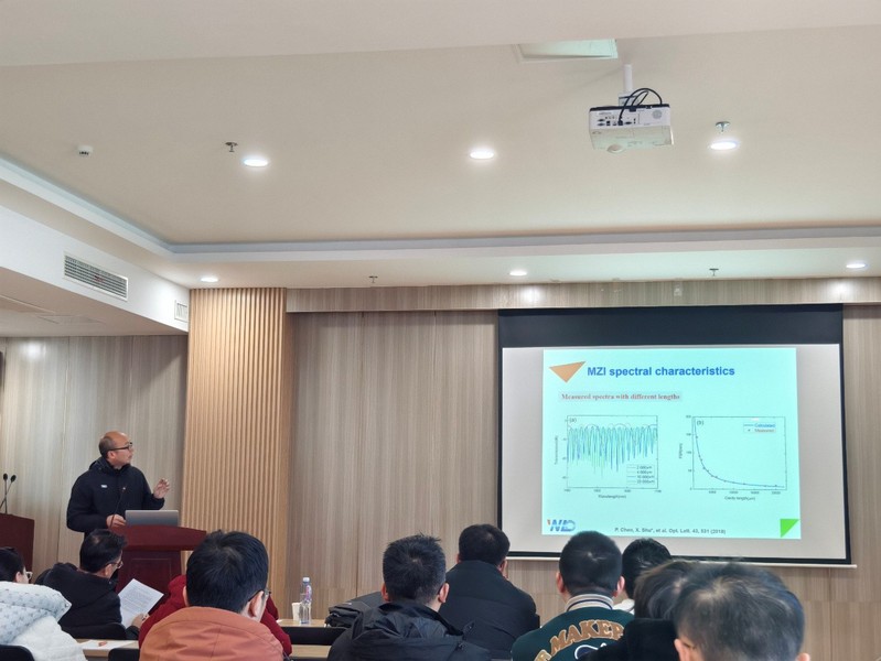 舒学文教授的报告题目为“飞秒激光制备的微结构波导光子器件及应用”。舒教授分享了团队利用飞秒激光直写技术制备的一系列新型微结构波导光子器件,包括基于干涉原理的光纤微结构器件,新型光纤光栅器件以及片上波导结构器件等等,并讲述了这些器件在传感和光纤激光器领域的应用。报告结束后,舒教授与在场的师生进行了热烈的互动讨论,进一步深化了大家对超快激光微纳加工技术的理解和该领域的未来研究方向。