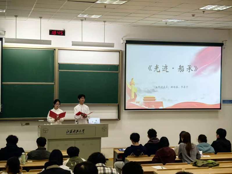 比赛现场气氛庄重而热烈。选手们慷慨激昂,深情款款,以饱满的热情和激昂的情绪,为大家带来了一场震撼心灵的视听盛宴。其中,《致江科大:九二风华,薪火永燃》的朗诵者田云松,以沉稳而饱含敬意的语调,回溯了学校九十二载的奋斗征程;《薪火相承,理绘华章》的安欣等人用富有画面感的语言,将校史中的点滴故事娓娓道来。