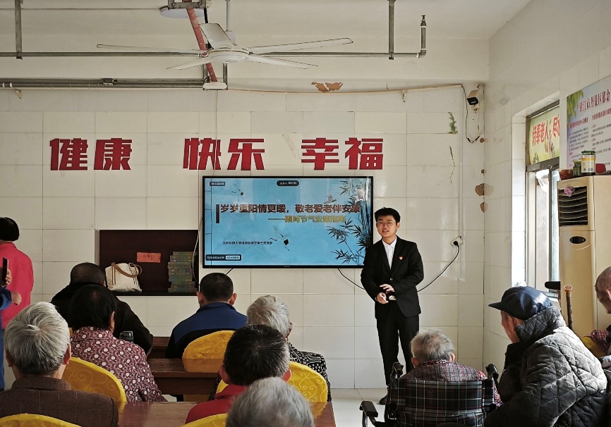 10月28日下午,在重阳节来临之际,raybey雷竞技 理学院学生第三党支部党员走进镇江市西簏郁金香怡养院,开展“岁岁重阳情更暖,敬老爱老伴安康”主题党日暨志愿服务活动。支部党员与40余位老人共迎重阳佳节,以青春之力传递敬老温度。