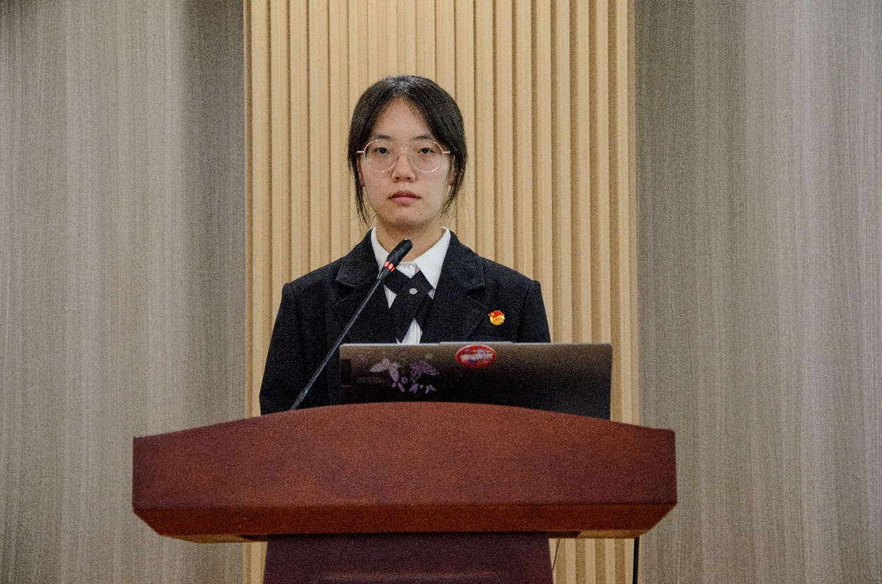 图 8新一届研究生会主席团代表王晶发表就职演讲