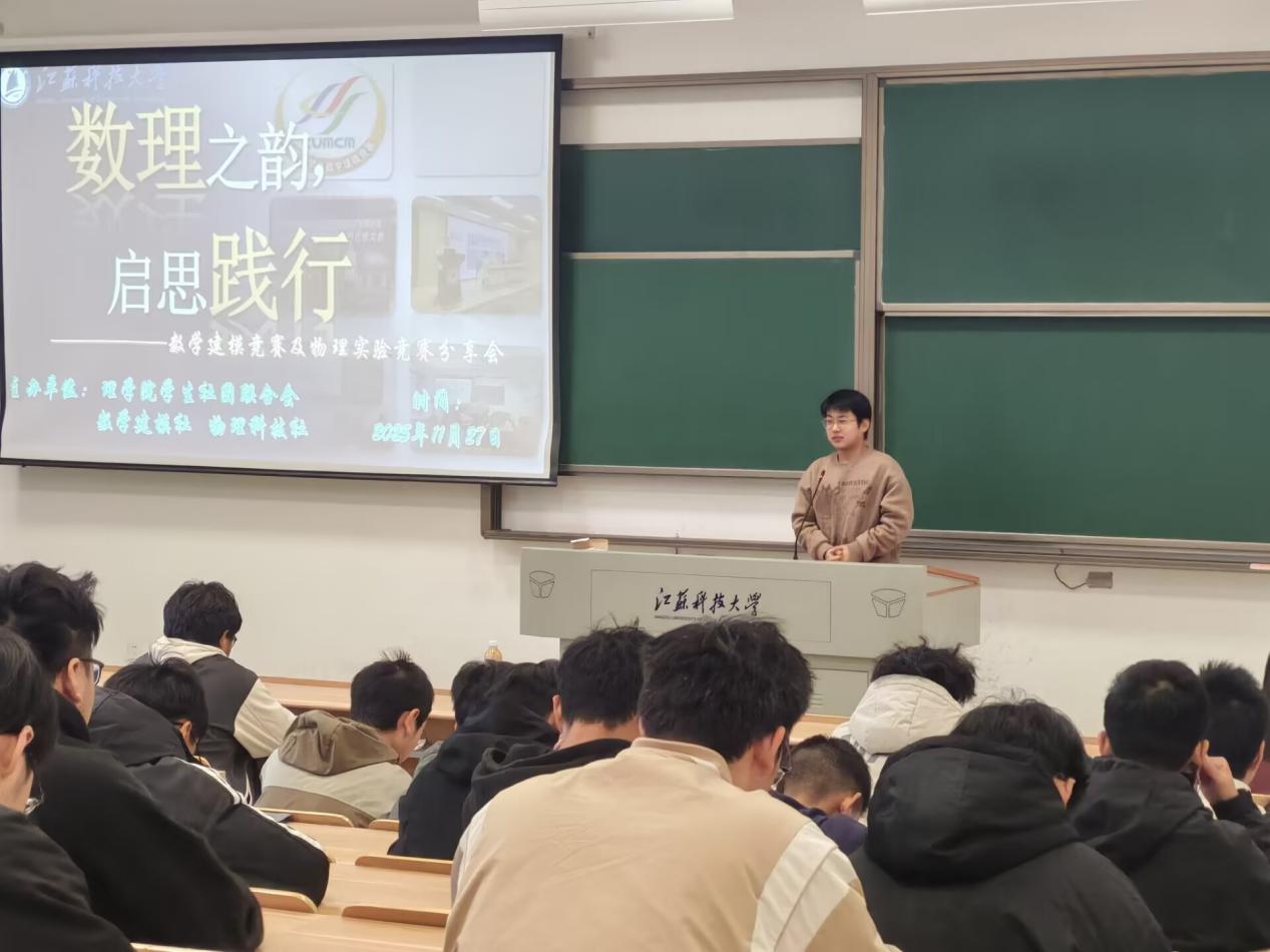 11月16日,“数学建模竞赛经验分享会”在文理大楼102教室成功举办。活动邀请往届数学建模竞赛获奖同学担任主讲嘉宾,结合自身参赛经历,从选题技巧、模型构建、算法优化到论文撰写,进行全方位、深层次的经验分享。嘉宾们通过真实案例拆解,生动演示了数学建模在解决实际问题中的应用逻辑,现场同学们踊跃提问,互动氛围热烈。此次分享会为有志于参与数学建模竞赛的同学提供了宝贵指导,进一步激发了大家对数学学科的探索热情。