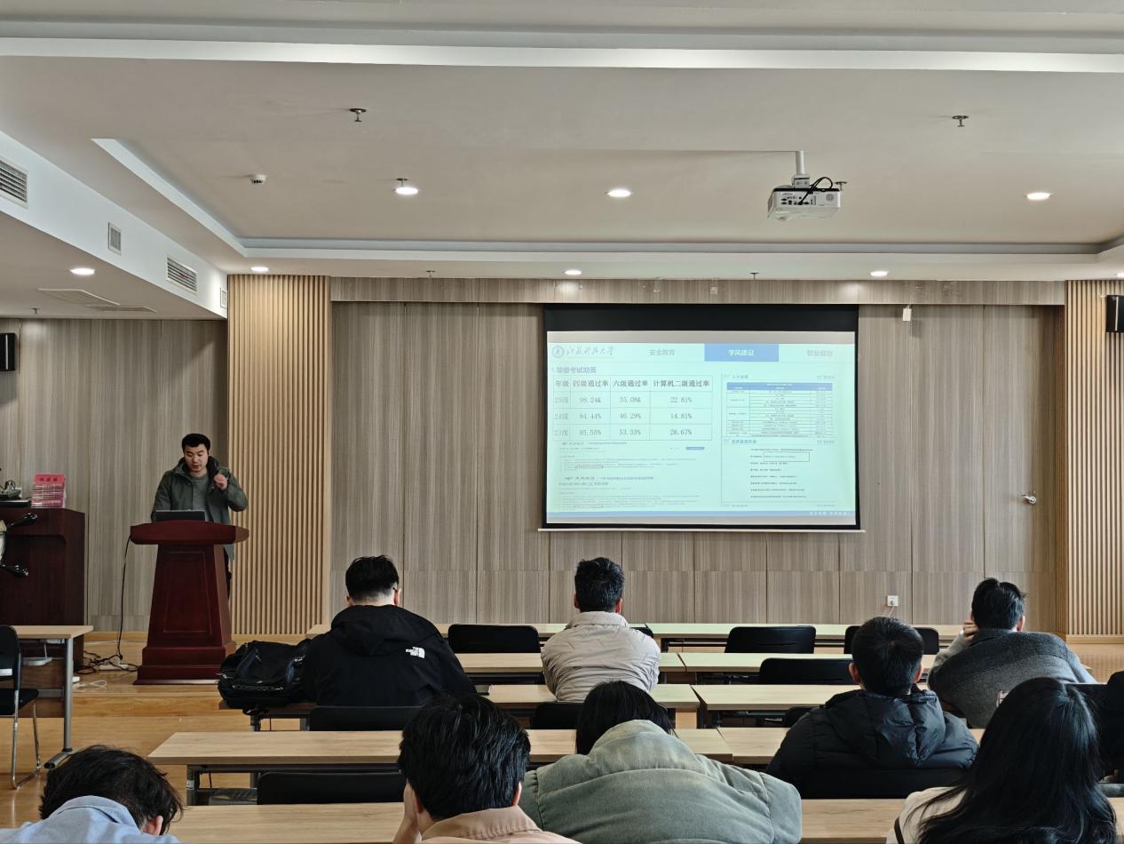 在主题班会上,各位班主任结合寒假期间首轮学业清查的结果,对照先进班集体评选标准,围绕平均学分绩点、等级考试通过率、国家学生体质健康标准达标率、文明寝室率等关键指标,开展 “画像式” 学情分析,各班级通过数据对比找差距、围绕问题谈思路、结合实际定目标,共同梳理改进方向。会后班主任与辅导员对积修课程较多的学生开展 “一对一” 学业帮扶谈话,制定个性化学习计划,帮助学生扫清学业障碍。