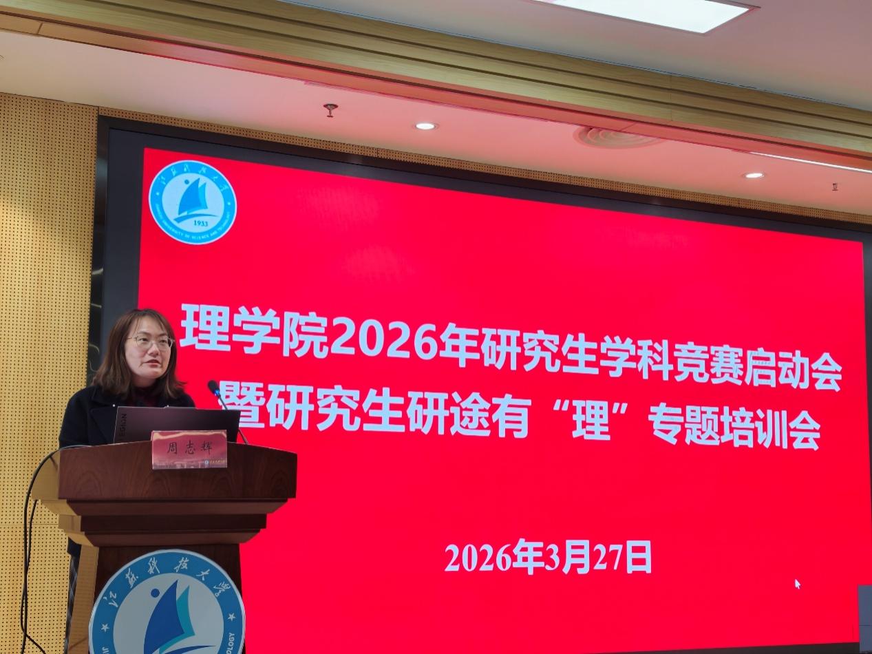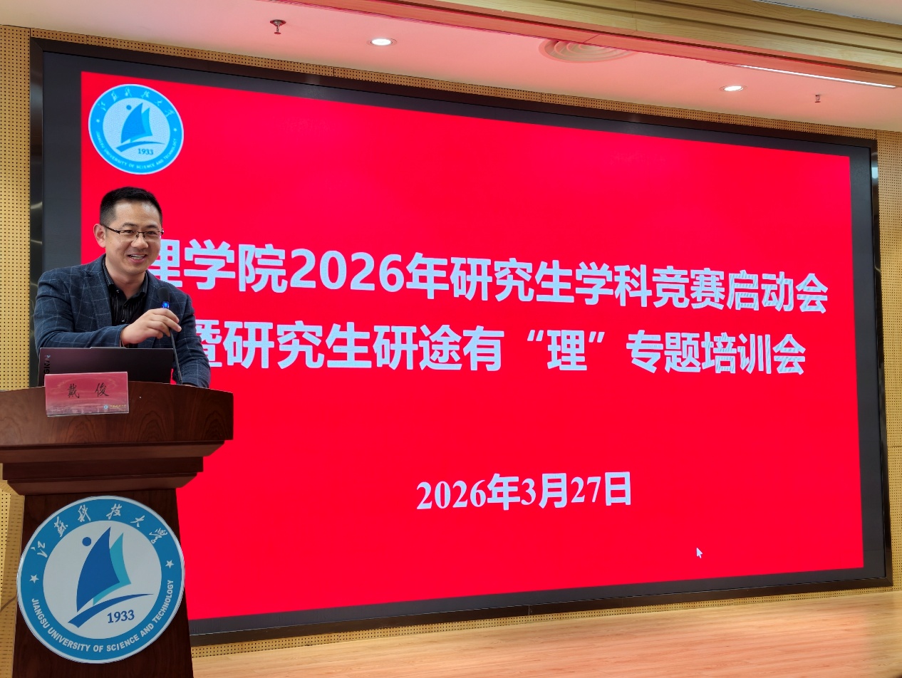 3月27日下午,理学院在图书馆B102举办2026年研究生学科竞赛启动会暨研究生研途有“理”专题培训会。理学院院长戴俊、副院长郭纪源,计算机学院党委副书记吴健康、环化学院副院长张俊豪、研究生导师及2024、2025级研究生等100余名师生参加会议。本次会议由理学院党委副书记周志辉主持。