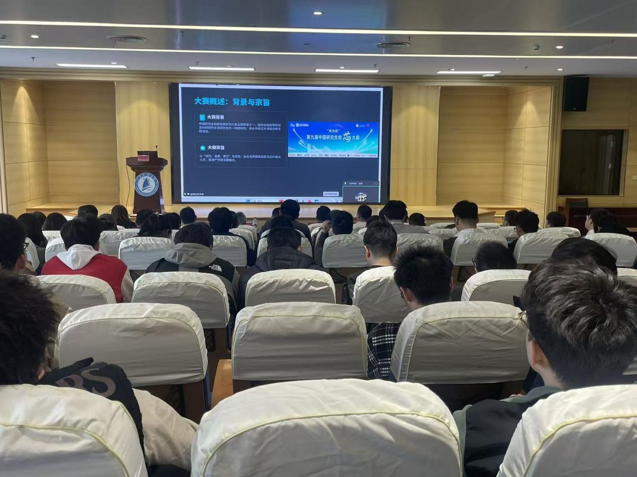 在研究生学科竞赛宣讲环节,海洋学院凌霖老师聚焦中国研究生创“芯”大赛,从赛事背景、参赛要求、赛道设置及备赛核心要点等方面展开详细宣讲,为有意向参赛的师生明晰了赛事方向与准备思路;环化学院副院长张俊豪围绕中国研究生“双碳”创新与创意大赛,结合学科特色深入讲解赛事核心主题与创新设计要求,鼓励研究生立足“双碳”国家战略开展科研与竞赛探索;计算机学院党委副书记吴健康对中国研究生人工智能创新大赛进行全面介绍,精准分析人工智能领域竞赛热点与发展趋势,分享了赛事申报、作品打磨与答辩展示的关键技巧。