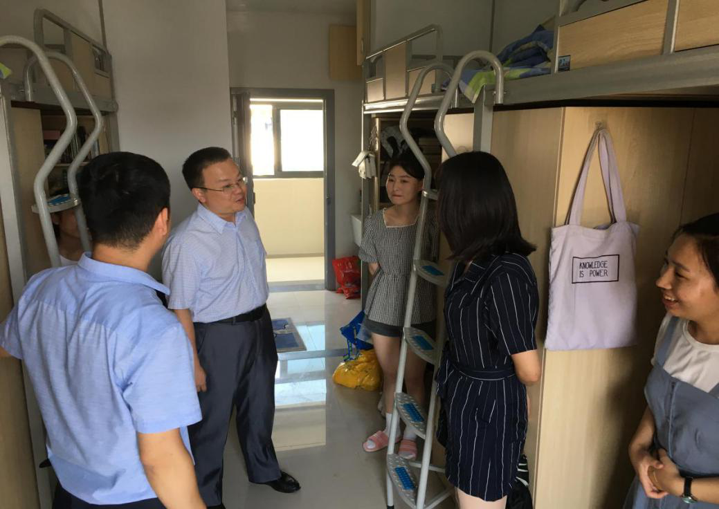 9月7日中午,生物技术学院党委书记杨美成、党委副书记钱平、全体辅导员、学业导师深入新校区学生宿舍,看望慰问搬迁入住的同学。
