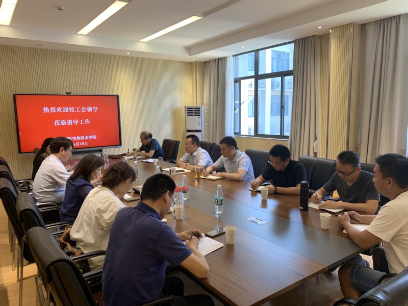 6月10日下午,校工会常务副主席郭永强一行5人莅临蚕研所生物技术学院调研指导工作。调研座谈会由所院党委书记杨美成主持。所院党委委员、工会主席康国平,党政办副主任何清,工会委员及工会小组组长参加了会议。