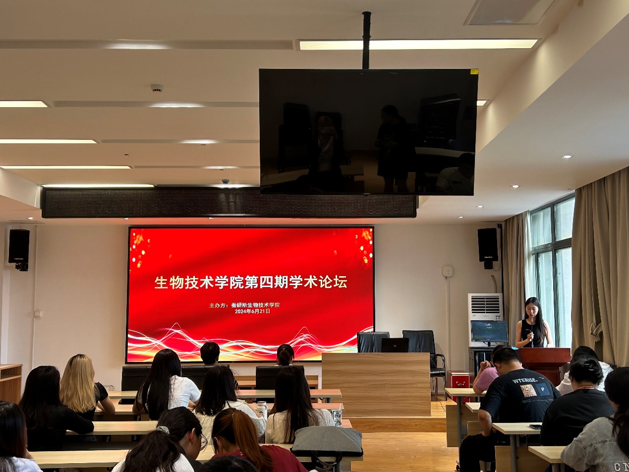 6月21日,在生物技术学院330举办的研究生青年学术论坛吸引了众多学生和教师的关注。本次论坛由生物技术学院研究生会主办,刘博文同学担任主持人。四位优秀同学王思怡、张颖、李婷婷和谭璐分别分享了自己在科研学术生活中的成果和心得体会。