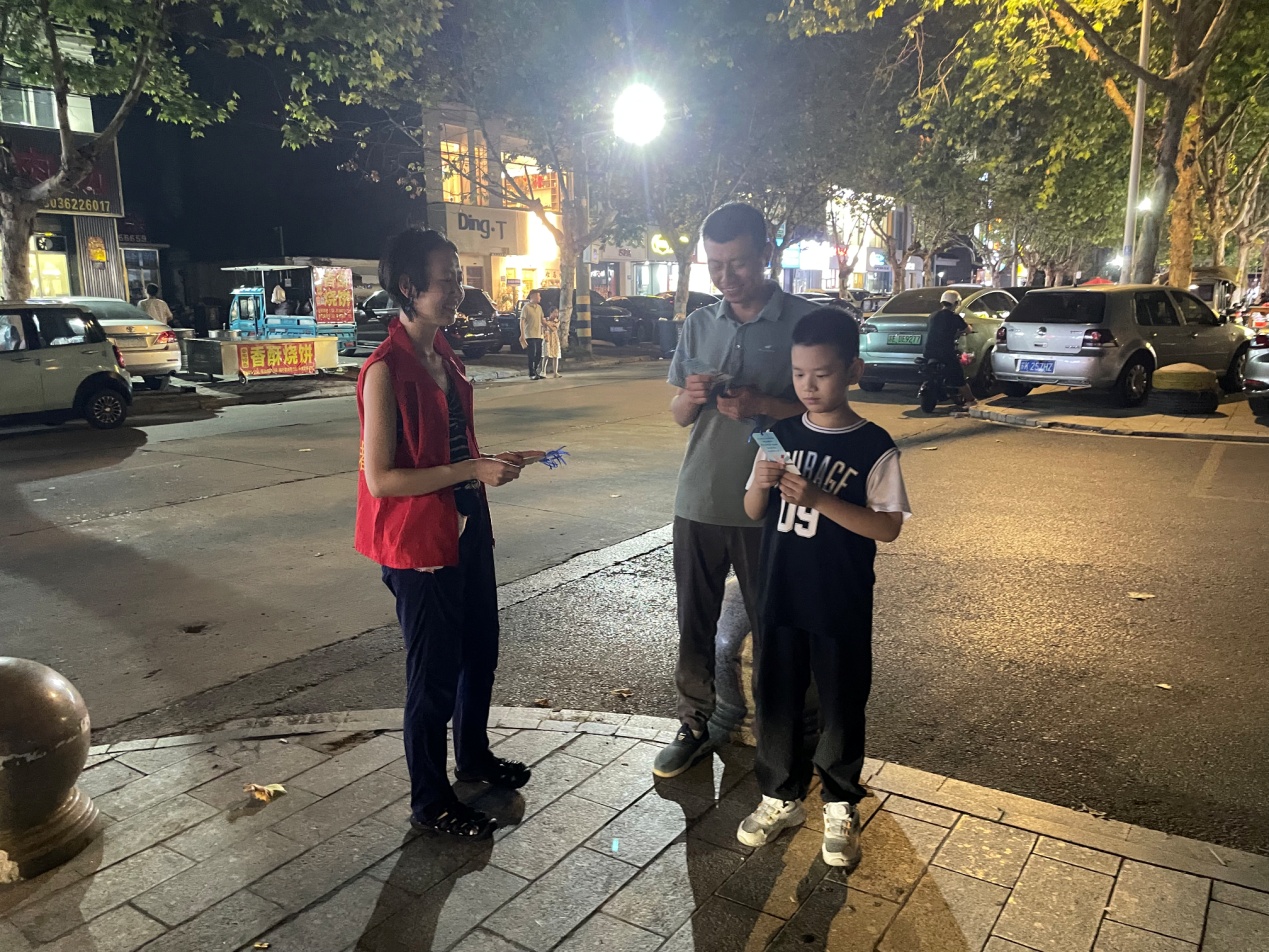 在扬州市江都区龙川小学城南校区,团队成员张榕钦通过举办三类创意小活动布置四分类垃圾桶道具和垃圾分类卡牌,通过分类模拟投放,将10张印有垃圾种类图案卡片投入正确垃圾桶,引导大家学习垃圾分类知识。紧接着,小朋友们跟随志愿者来到附近社区进行垃圾清理社会实践,将学习到的垃圾分类知识运用于生活实际中,以实践来加深对垃圾分类相关知识的记忆。王一凡小朋友在全程参与完活动后表示:“通过理论加实践的学习,让我对垃圾分类的重要性有了更深刻的认识。”