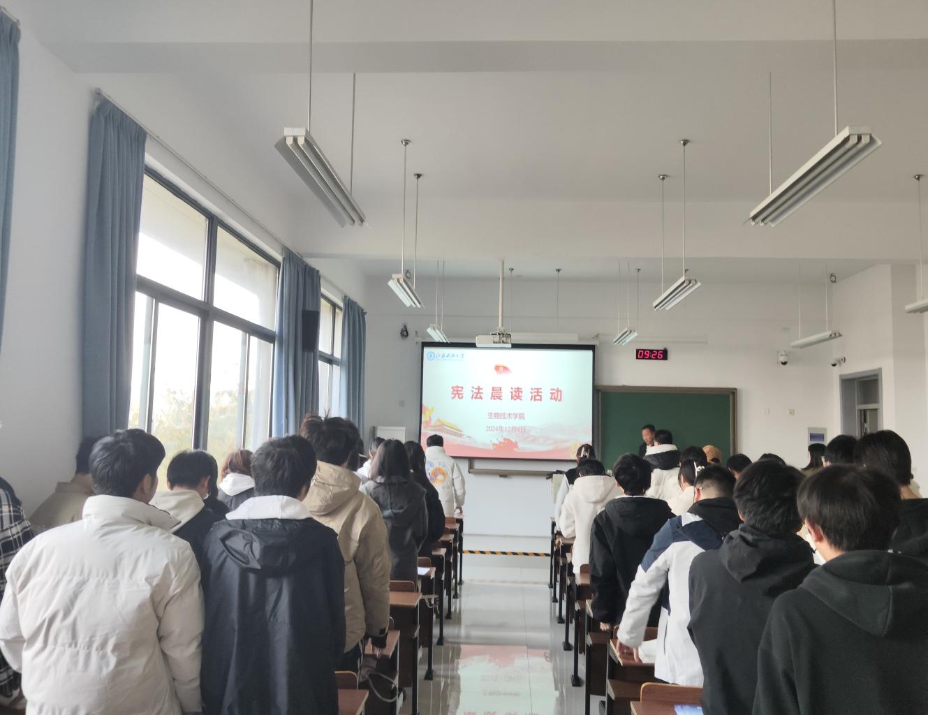 12月4日,生物技术学院举办了一场意义深远的宪法晨读与《宪法伴我成长》歌曲合唱活动,旨在弘扬宪法精神,增强学生法治观念。