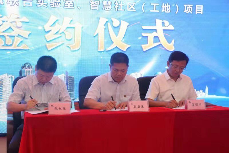 副校长姜朋明代表我校签订了raybey雷竞技 、海建集团、南京国之鑫科技有限公司战略合作协议。校长周南平、海建集团董事长吴亚春和南京国之鑫总经理张红星共同为海建—科大智慧建筑(物联网)研究院揭牌。