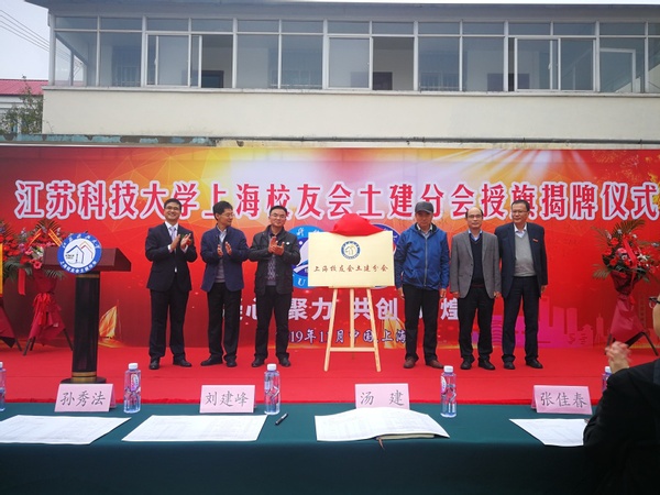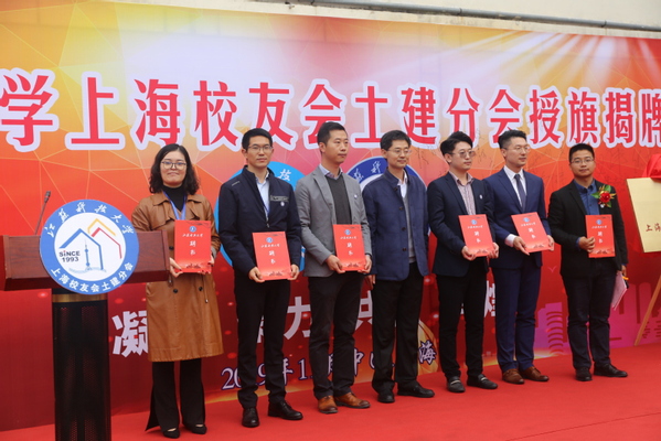 会上,1997届校友苏海峰代表上海校友会土建分会筹备组向大会作筹备工作报告,土建学院党委副书记李红明宣读组织架构和建议任职人选名单,孙秀法、汤建、刘建峰及土建学院领导共同为土建分会揭牌,并向土建分会成员颁发聘书和授旗。