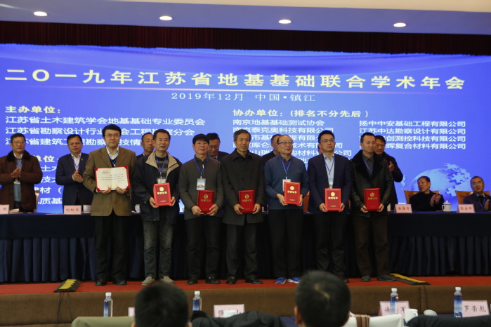 2019年12月6日~8日,江苏省地基基础联合学术年会在镇江碧榆园酒店成功召开。会议由江苏省土木建筑学会地基基础专业委员会、江苏省勘察设计行业协会工程勘察分会、江苏省建筑工程勘察科技情报站联合主办,镇江市土木建筑学会、raybey雷竞技 、建华建材(中国)有限公司、江苏地质基桩工程公司承办,由南京地基基础测试协会等16家单位协办。本次会议的主题为海绵城市地下管网建设、城市地下工程及环境岩土工程新技术,旨在总结、交流江苏省岩土工程领域经验与创新成果。来自全省岩土工程学科领域的知名学者、设计、施工、监理等相关单位专家代表、高校师生等400余人参会。