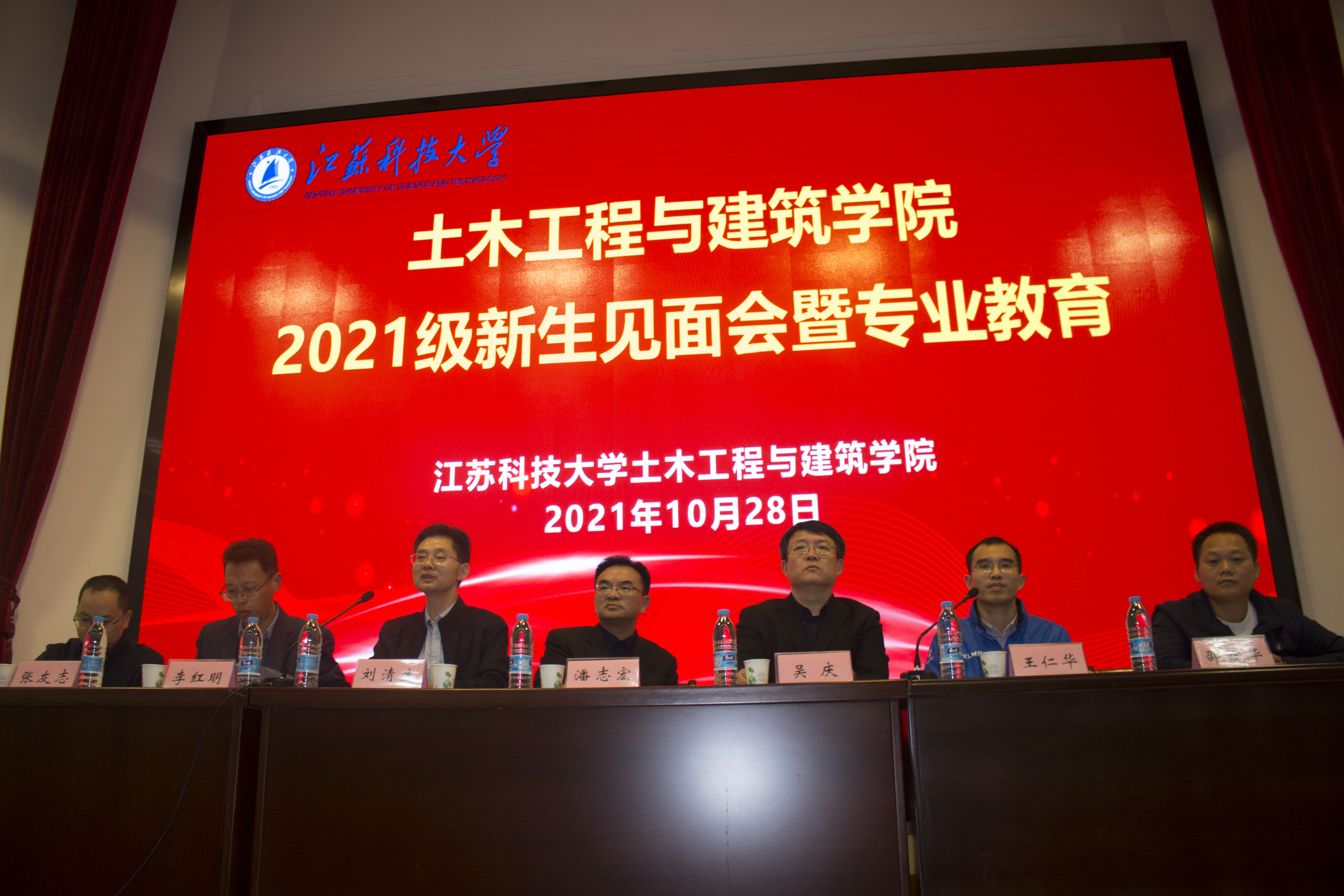 10月28日晚上,土木工程与建筑学院2021级新生见面暨专业教育座谈会在梦溪校区演讲厅召开。土建学院院长潘志宏、党委书记刘清生、副院长吴庆、党委副书记李红明、副院长王仁华、土木工程专业负责人邵建华及工程管理专业负责人张友志出席了本次座谈会。座谈会由深蓝学院辅导员王维娟老师主持。