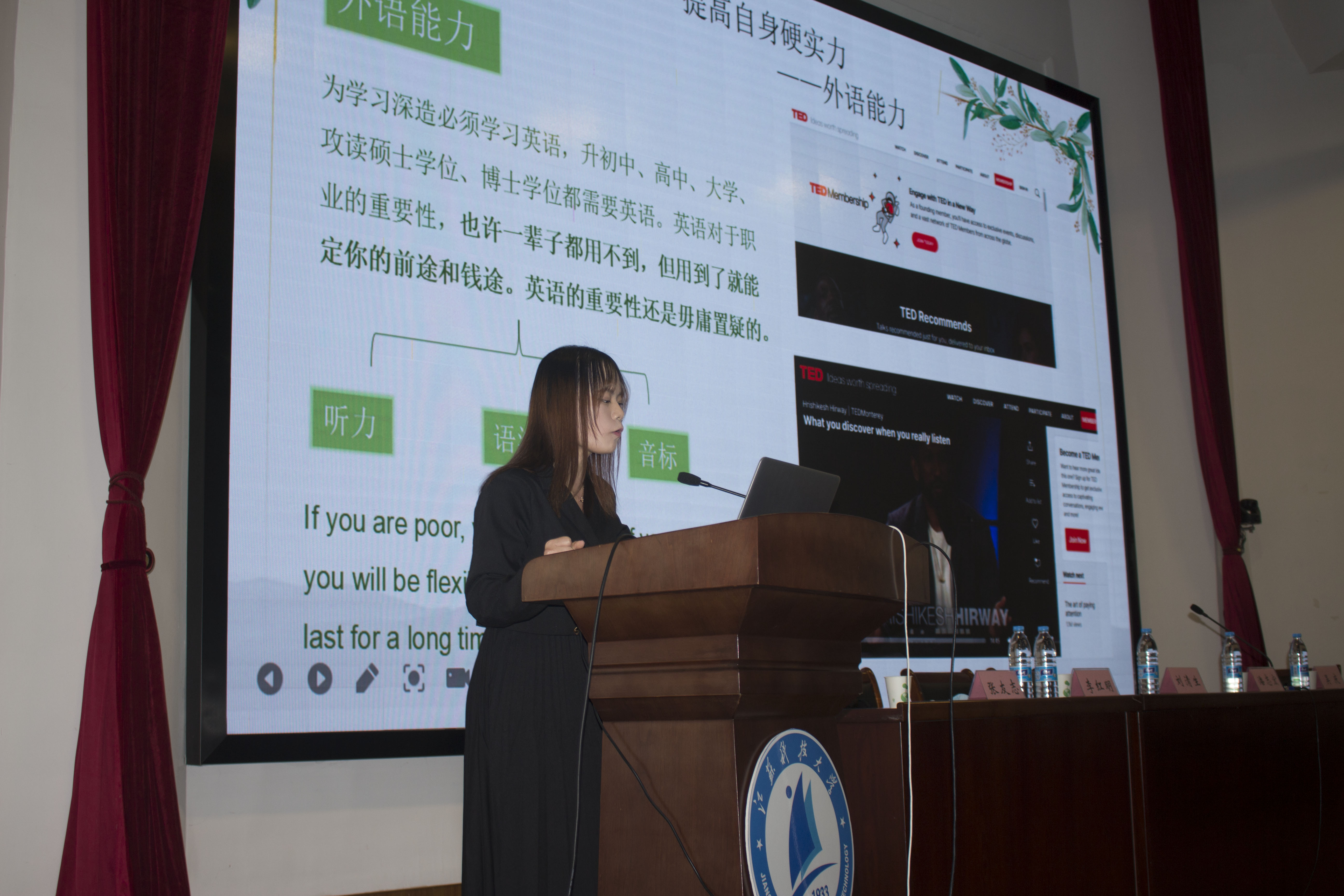 在会议“优秀土建学子学习经验交流”环节,2018级土木工程专业骆汉轩同学和2019级工程管理专业张陈晨同学,向同学们分享了他们的求学经验,来帮助新生们在进入大学的初始阶段就确立四年的奋斗目标,明确人生规划。骆汉轩同学以老学长的身份勉励学弟学妹们:“在大学生活中要制作出自己的大学三明治,要学会明己、明事、明理。学会自我反省来调整自己,找准自己的定位,把生活牢牢把握在自己手中;学会制定自己的计划,明确自己的人生方向;要勤于钻研,在钻研中享受钻研,知晓知识的来龙去脉并将自己学过的知识发散出去,融会贯通。”张陈晨同学则提醒新同学们在大学阶段要学会变通,要攻克专业知识,丰富工作经验,增强外语能力来提高自身的硬实力,同时要学会独立思考,管理个人情绪,培养自学能力和时间管理能力来提高自身的软实力。此外,她引用鲁迅先生名言鼓励同学们提高自身思想觉悟,培养青年精神,为中国发展凝心聚力,让中国事业发展乘风破浪,披荆斩棘。