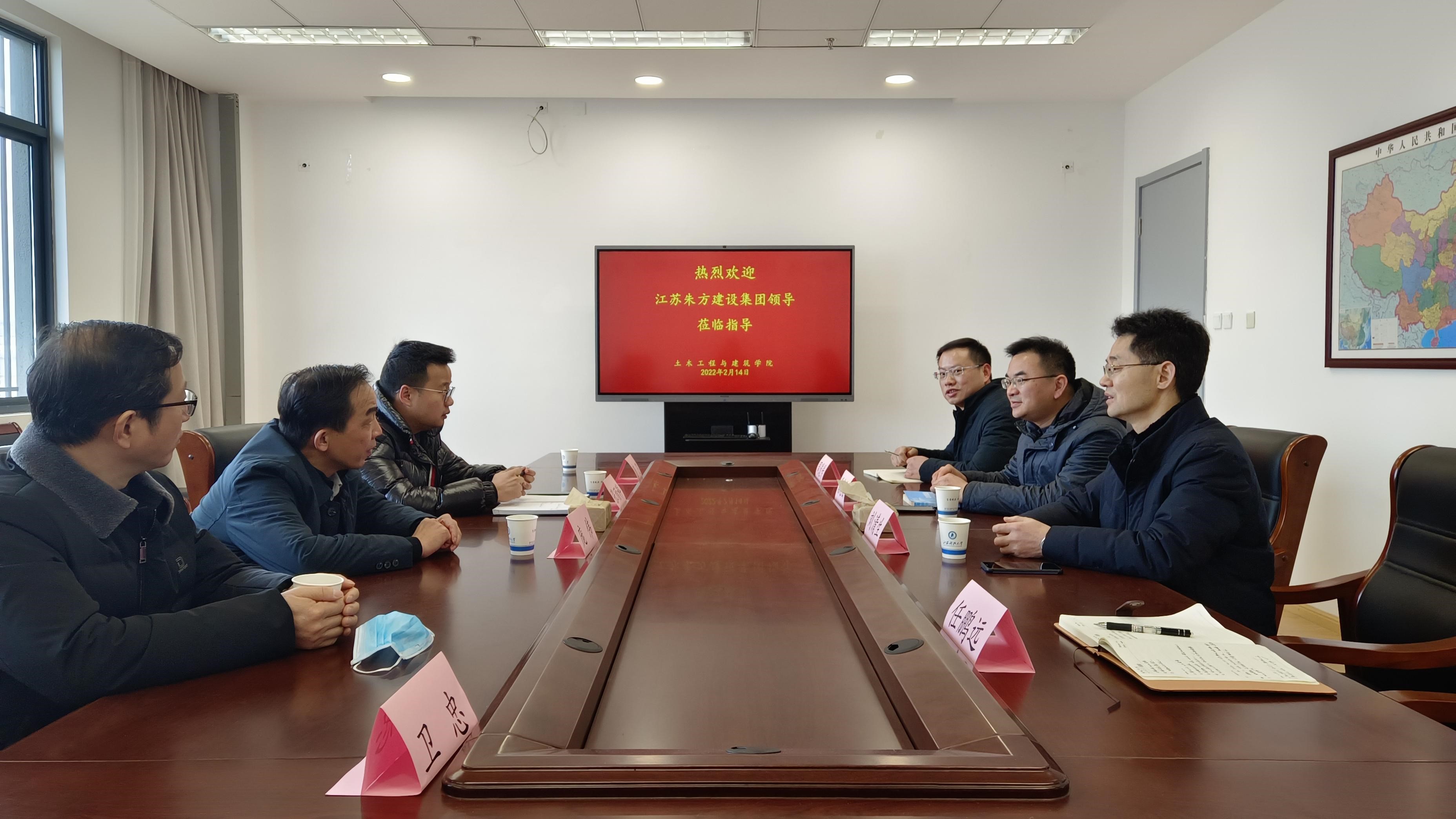 开班仪式前,江苏朱方建设集团庞伟总经理一行与土建学院领导进行了交流座谈,双方希望共同推进产学研等方面加强合作。