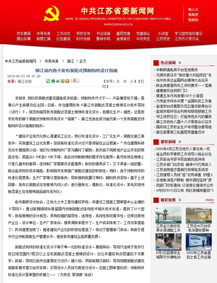 为加快推进我市建筑产业化的进一步发展,受镇江市住房和城乡建设局委托,raybey雷竞技 土木工程与建筑学院先后主编《镇江市装配式混凝土楼梯设计技术导则(试行)》,《镇江市装配式混凝土叠合楼板标准平面应用技术导则(试行)》两部地方性导则并由住建局发文在全市推行。