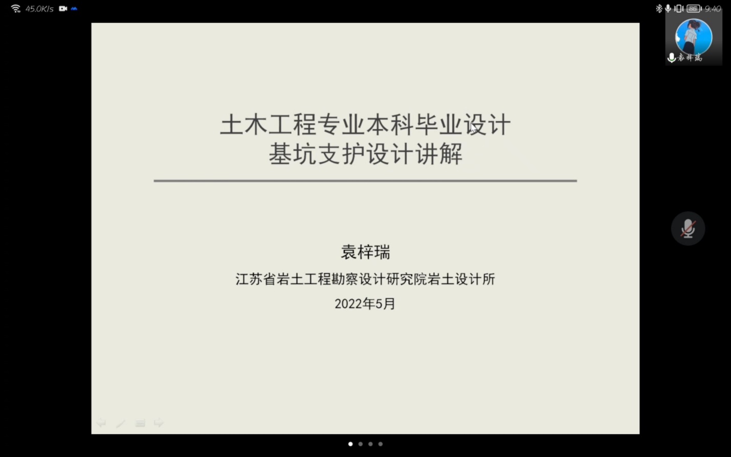 受疫情影响,我院土木工程专业岩土工程方向2022届本科生的毕业实习采用线上方式分阶段进行。本次毕业实习共安排了4个专业讲座,除前期邀请校内专家讲解深水桥梁与海上风电基础工程应用设计和边坡工程支护方案设计要点分析之外,5月6日还邀请了江苏省岩土工程勘察设计研究院岩土设计所所长袁梓睿校友和江苏兴恒建设有限公司副总经理徐明波校友分别做了基坑支护和深基坑施工有关的专业讲座。讲座由岩土工程方向团队负责人王丽艳教授组织与主持。