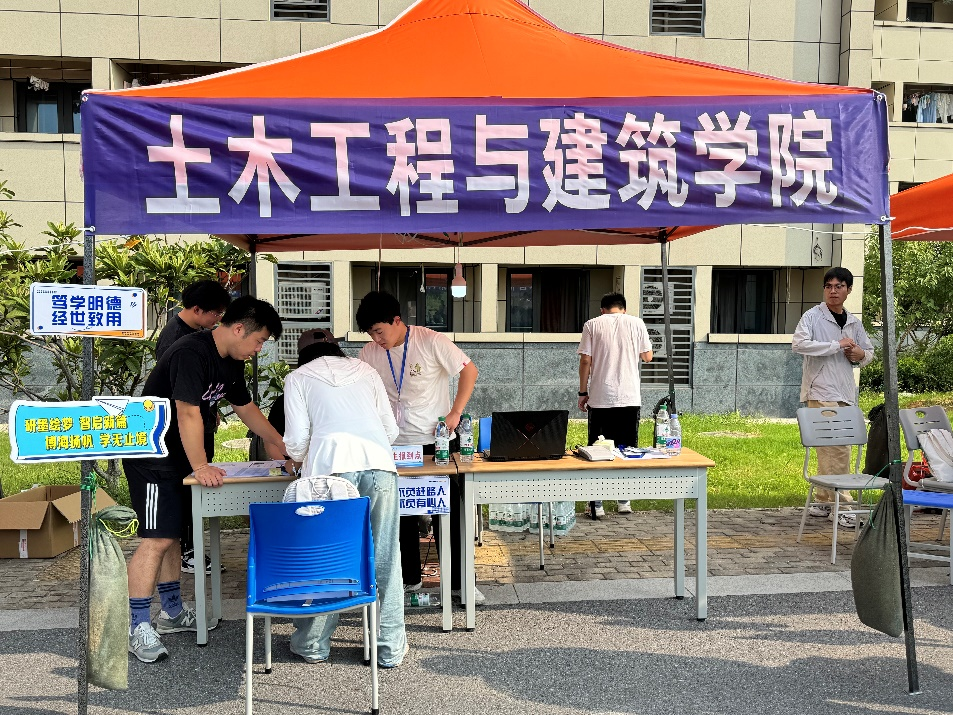 迎新现场热闹非凡,迎新处布置了帐篷、横幅、创意站台和拍照打卡墙等“小惊喜”,志愿者们为新生和家长们提供优质服务,帮助新生核验信息、打卡拍照和答疑解惑,用最饱满的热情让新生体会到土建学院的家文化。