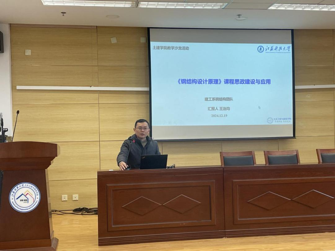 王治均老师首先介绍了课程思政融入《钢结构设计原理》的教学设计和考核评价方法,对《钢结构设计原理》课程的思政元素进行系统介绍,从大国巨匠、大国建造和工程警示案例等构建专思融合的思政资源库,创建了思政考核评价机制,并同时在线下课程和在线课程教学中得到应用和实践。
