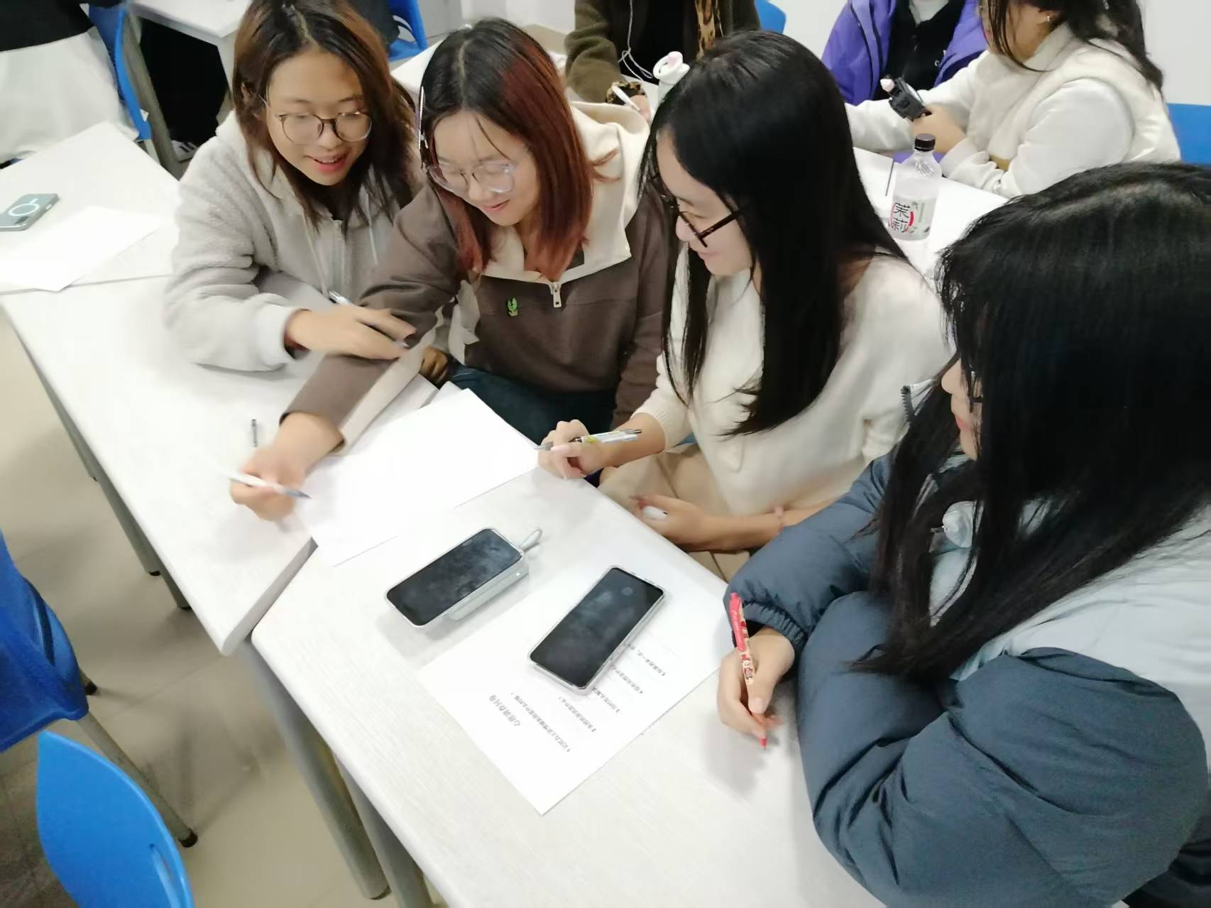 随后,活动进入核心环节——“思维变形记”。同学们自由组队,利用提供的水彩笔、大白纸任务卡片等材料,通过前期理论学习,组队完成反内耗思维导图,共建自己的精神家园,并将“最近一次让你感到压力的事情”写在纸上,并且用将纸撕掉的方式来排解自己的坏情绪。之后主持人开展小组讨论环节,对于特定情景,讨论关于情绪管理的方法,集思广益。