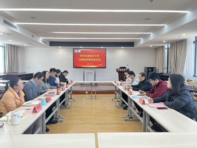1月10日,临沂大学外国语学院党委书记冯炀、党委副书记王乐相一行5人来我院调研交流。学院院长曾景婷、党委书记姚双良、副院长周树军、副院长韩菁菁、团委书记刘萧豪、党政办主任张进玮参加交流。会议由外国语学院党委副书记赵莉主持。