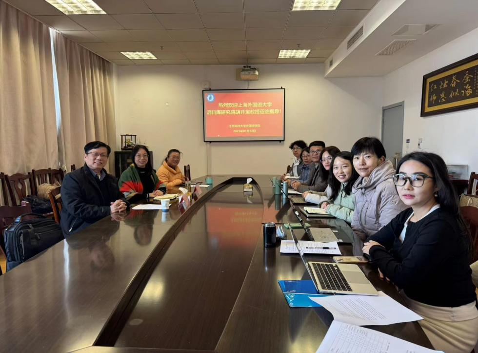 近日,上海外国语大学胡开宝教授应邀莅临外国语学院,指导学院的船舶海洋术语库建设与研究以及跨学科人才培养方面。外国语学院院长曾景婷教授主持会议,副院长韩菁菁以及英语系、翻译系、俄语系的系主任和部分教师代表参会。