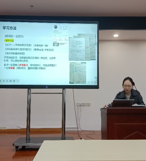 保研之路不仅需要扎实的专业功底,更离不开科学的学习方法与坚韧的心理素质。陈佳慧分享了在词汇记忆与翻译训练中的独到心得,“A4纸背单词法”与“翻译手写复盘”等实用技巧使同学们受益匪浅。作为压轴分享者,王怀玉结合自己参加多所高校夏令营与预推免的实战经验,详细解读了保研的时间规划、信息渠道搜集及面试准备要点。她“高位候补成功转正”的经历,更为正处于焦虑与迷茫阶段的同学带来了极大的信心与鼓舞。