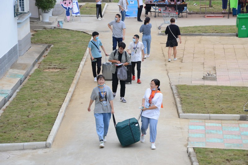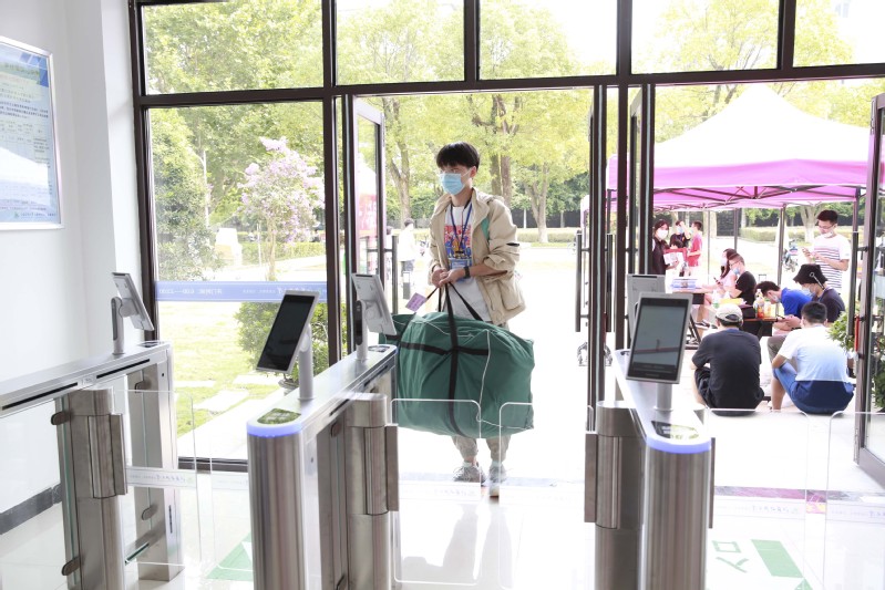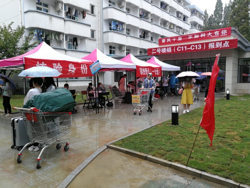 14日一早穿梭于火车站、客运站、高专临时停车场、raybey雷竞技 梦溪校区、长山校区的接送班车在新生完成测量体温、核验苏康码等防疫检测后,载着新生抵达美丽校园。“同学,你好,请出示苏康码,配合测温”,因疫情防控需要,新生报到时家长不能进入校园,这是今年新生报到程序的变化。在送完孩子进入校园后,很多家长迟迟不愿离开,还想在离开前看孩子一眼,在梦溪路校门外,站满了观望自己孩子的家长们。很多家长用手机记录着孩子进入校园的时刻。一位来自重庆的秦泽旭家长说,“不能亲眼看看孩子的生活和学习环境,比较遗憾,但是也能理解,疫情防控期间学校也是为了保障孩子们的生命健康安全。看到这些热情、细心的老师和志愿者,以及学校周全的报到流程,我们还是比较放心的,希望孩子能够在这里好好学习,成长成才。”在大门口与家长告别后,2020级新生们在志愿者的带领下进入校园办理报到手续,成为新生的成长第一课。