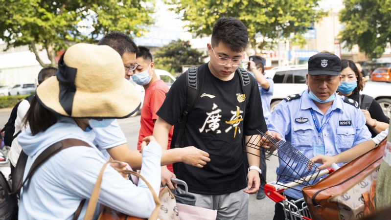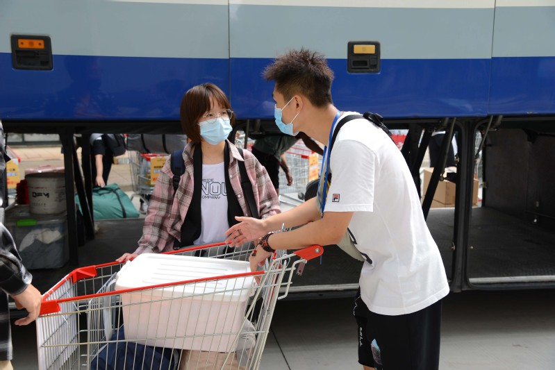 这几日,迎新志愿者覆盖了校外高铁站、客运站、临时停车场接驳点和校内多个站点。校外志愿者帮助测量体温、查验苏康码,引导新生乘坐接驳车抵达校园,校内志愿者帮助新生指路、运送行李、办理相关手续等,为前来报到的新生创造一份家的温暖,做到让学生安心,让家长放心。2018级理学院应用统计专业王志鹏是梦溪校区校门迎新工作人员,每天早早到岗,开启为新生保驾护航的一天。他说:“虽然很辛苦,但也成就感满满,回想前年自己在热情的学长学姐接待下办理报到,心里很温暖,希望这份温暖传递给2020级新生。”