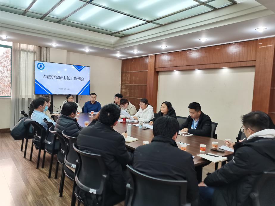 1225日、28日,深蓝学院在学院301会议室分两场召开班主任、辅导员工作交流研讨会,学院党总支副书记刘剑主持。