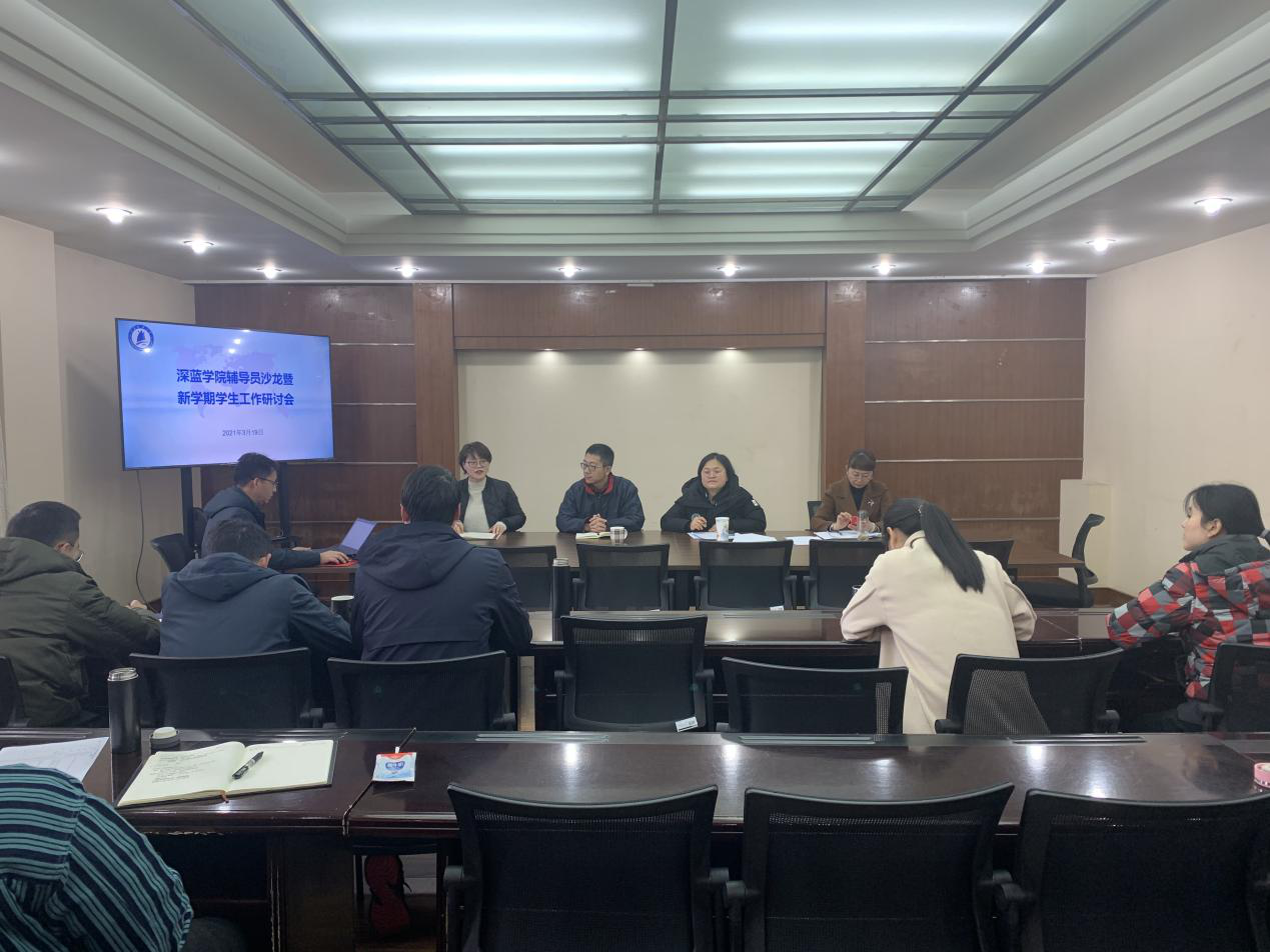 为贯彻落实2021年度学校重点工作部署,按时保质完成新学期学生管理工作的各项任务要求,3月19日下午,深蓝学院召开新学期辅导员沙龙暨学生工作研讨会。学院副书记刘剑、副院长周昱,教务办、学工办全体参加了本次研讨会,团委书记何筠主持。