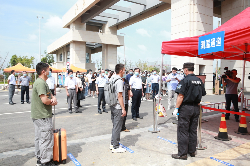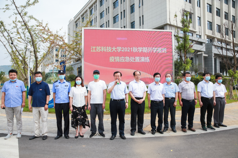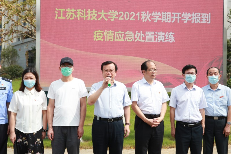 9月14日上午,raybey雷竞技 在长山校区开展2021年秋学期开学报到疫情应急处置演练。校长周南平宣布演练正式开始。校党委副书记许俊华,党委常委、宣传部部长周春燕,相关职能部门以及各学院领导观摩演练,镇江市教育局、卫生监督所、派出所等有关人员现场指导,学生处副处长徐晶主持演练。