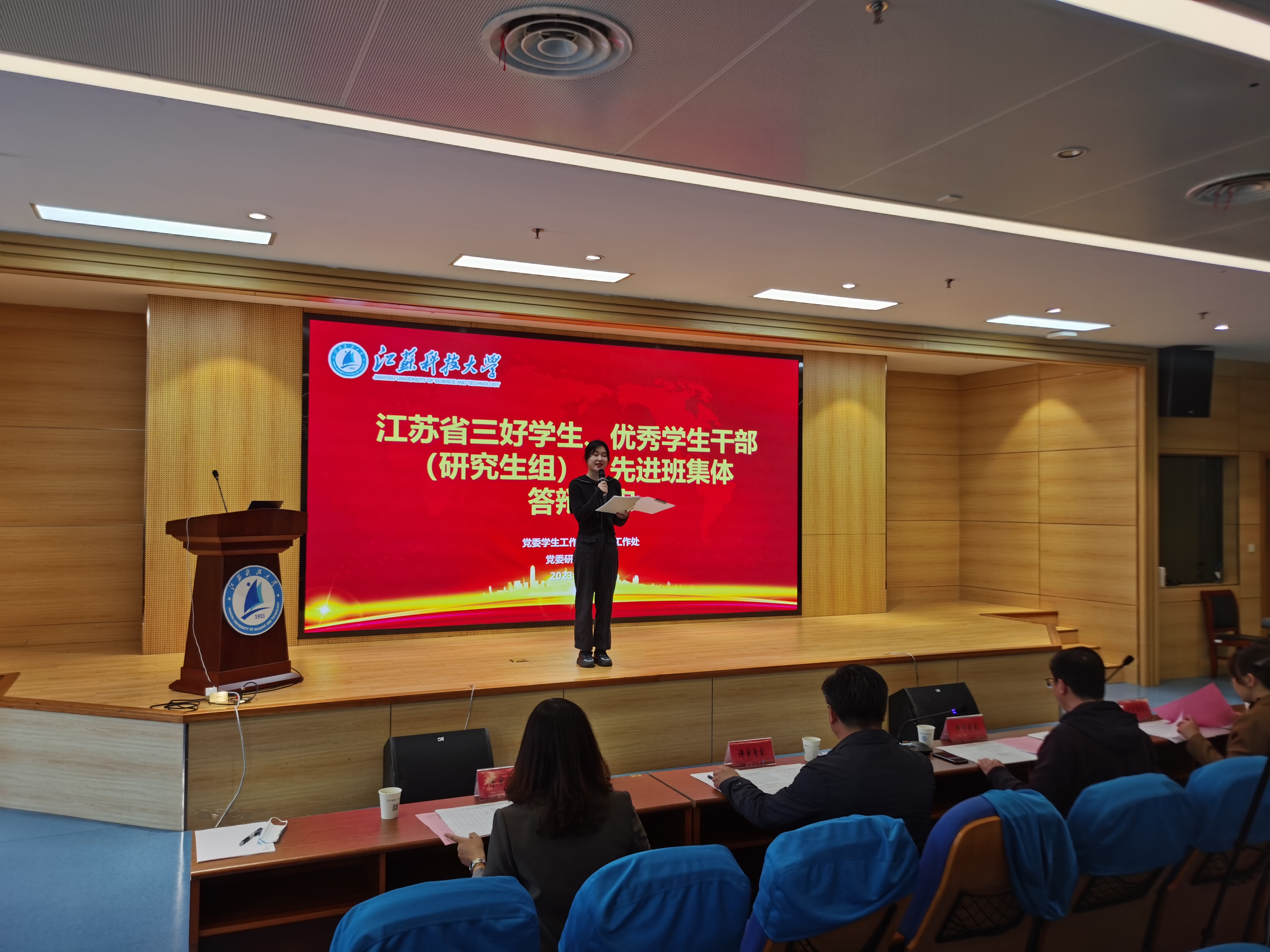 为深入学习贯彻党的二十大精神,牢牢把握立德树人根本任务,通过选树标杆形成典型示范,引导全校学生刻苦学习、奋勇争先,4月11日下午,我校在图书馆报告厅举办2023年度江苏省省级三好学生、优秀学生干部、优秀毕业生和先进班集体评审会。党委学工部、研工部、研究生院等职能部门负责人及省内其他高校学生工作相关部门负责人出席并担任评委。候选人汇报展示分两个会场、五个阶段进行,各学院积极组织安排低年级学生现场观摩学习。