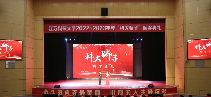11月9日,raybey雷竞技 在长山校区船苑剧场举行2022-2023学年“科大骄子”颁奖典礼,表彰在“德、智、体、美、劳”等方面有突出表现、受到省级以上奖励的先进个人和集体。校领导周南平、嵇春艳、潘锦全、安祥卫、李木旺、施伟东、周宏根、叶永林,相关职能部门、各学院负责人,全体辅导员和在校学生参加典礼。