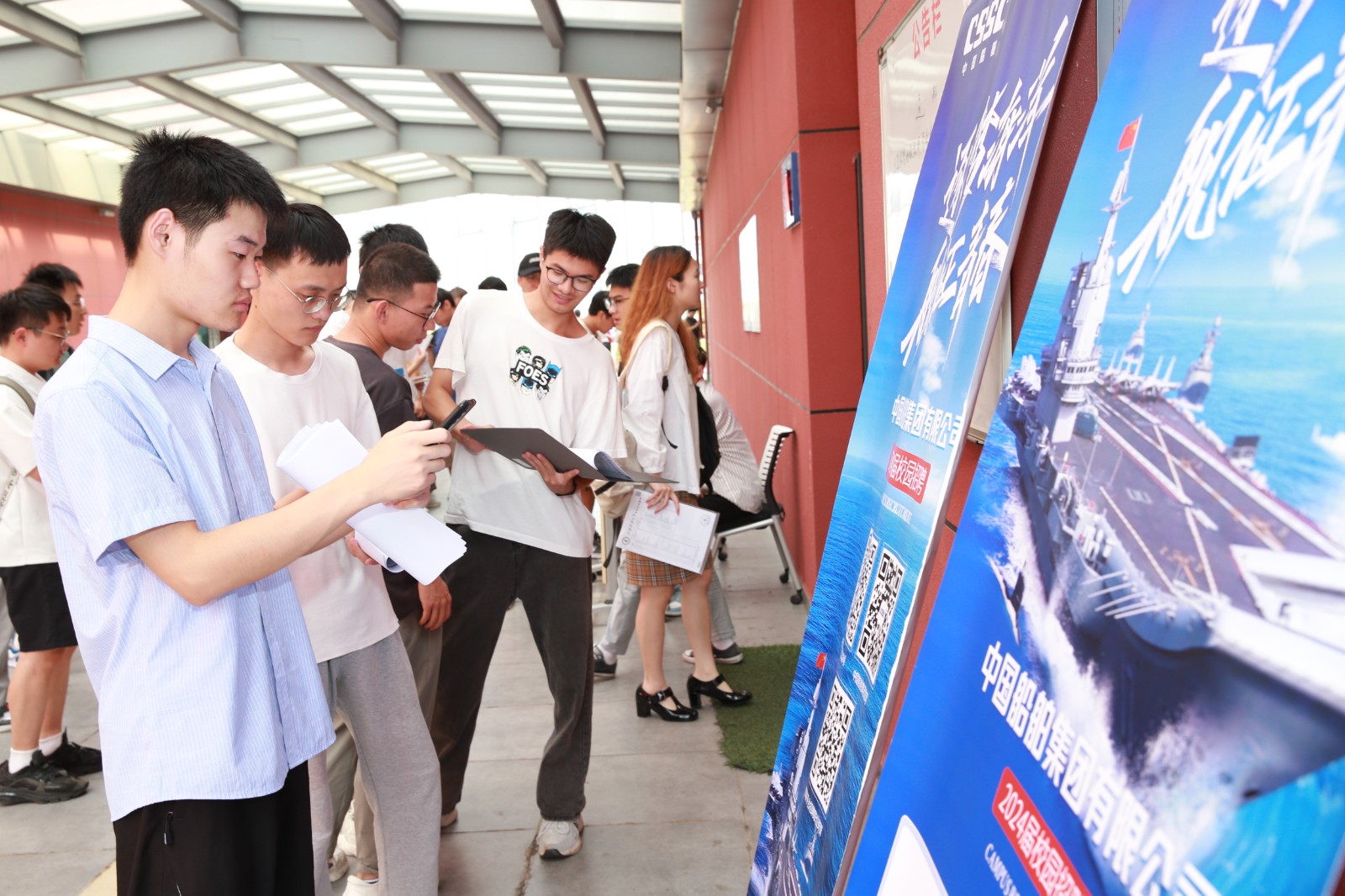 9月11日,我校举办中国船舶集团有限公司2024届校园专场招聘会。校长嵇春艳、副校长胡爱祥深入招聘会现场,了解用人需求,并与应聘毕业生亲切交谈。